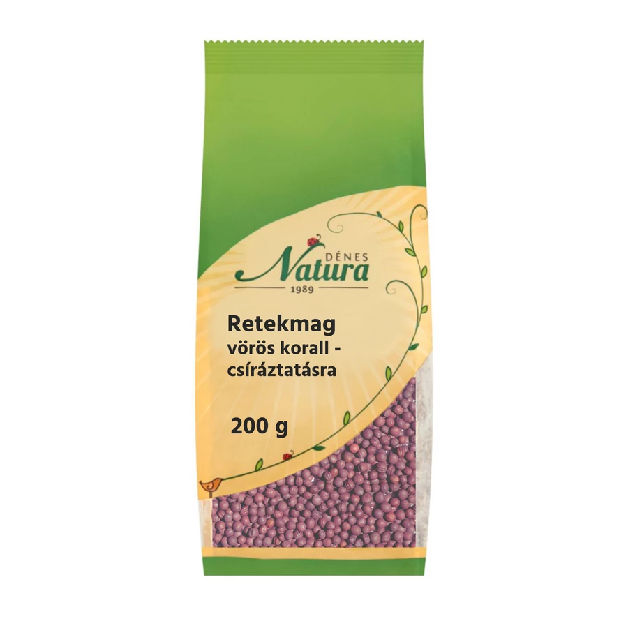 A Retekmag - vörös korall csíráztatásra 200 g egy kiváló minőségű, magas tápanyagtartalmú termék. A magok nagy mennyiségben tartalmaznak fehérjét és ásványi anyagokat. A magok rendkívül egészségesek és segítenek a szervezetnek az optimális működésben. Magas antioxidánstartalma miatt segíti a szervezetet a betegségek megelőzésében és az immunrendszer erősítésében is. Könnyen elkészíthető saláta vagy smoothie hozzáadásakor is nagy mennyiségű tápanyagot biztosítanak. Az alacsony glikémiás indexe miatt cukorbetegek is fogyaszthatják biztonsággal.